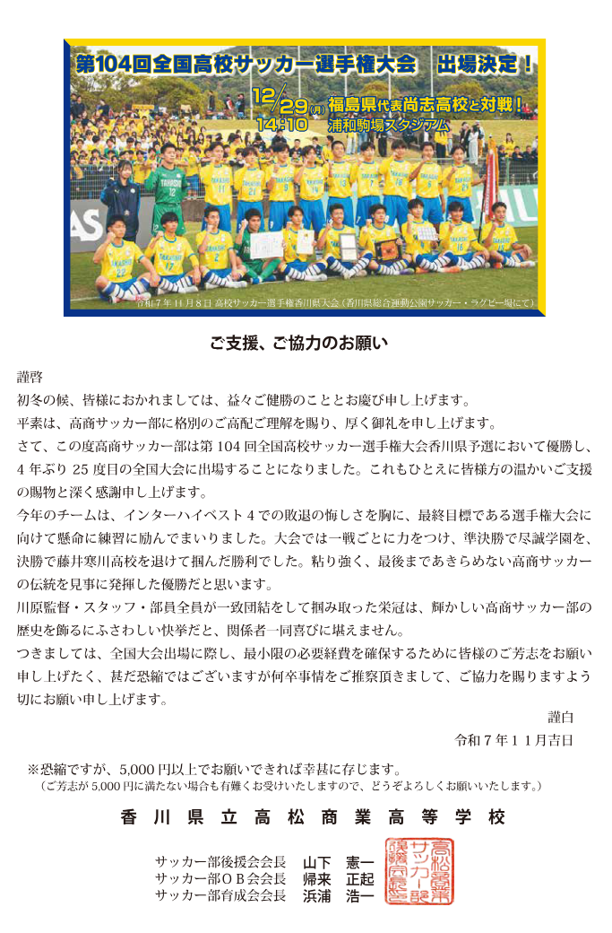 母校の後輩達の為に、皆様のご協力をお願い致します。